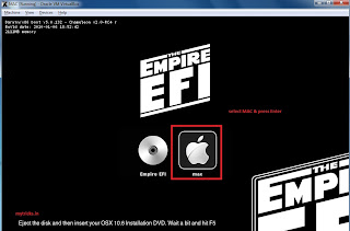 Now during MAC OS X booting you will see the EmpireEFIv boot-loader. Select MAC OS X & press Enter as shown below.